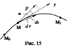 Если сила, действующая на точку, является переменной или её перемещение является криволинейным (рис. 15), то в этом случае вводится понятие элементарной работы силы dA, которой называется работа силы на бесконечно малом перемещении. Поскольку бесконечно малое перемещение можно считать прямолинейным, а силу на этом перемещении постоянной, то