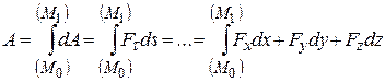 Работа силы на конечном перемещении М0М1 равна взятому вдоль этого перемещения интегралу от элементарной работы: