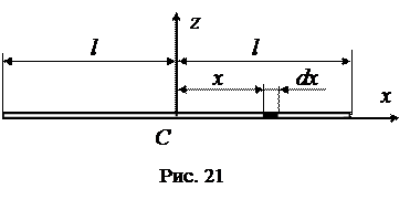 Найдем момент инерции однородного стержня длиной 2 l относительно оси z, проходящей через его центр масс (рис. 21).