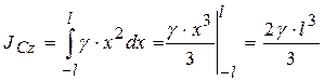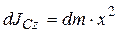 Пусть γ – линейная плотность стержня (масса единицы его длины, кг/м). Выделим на расстоянии х от оси С z элементарный отрезок длиной dx. Момент инерции этого элементарного отрезка относительно оси