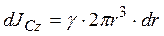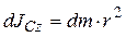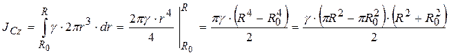 Пусть γ – поверхностная плотность кольца (масса единицы его площади), кг/м2. Выделим на расстоянии r от оси С z элементарное кольцо толщиной dr. Момент инерции этого элементарного кольца относительно оси С z: