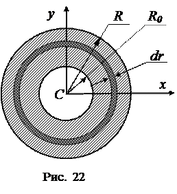 Найдем момент инерции однородного кольца относительно оси С z,, проходящей через его центр масс (рис. 22).