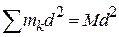 Формула (36) связывает моменты инерции относительно параллельных осей и выражает теорему Гюйгенса: момент инерции системы точек относительно произвольной оси, параллельной центральной, складывается из центрального момента инерции и произведения массы системы на квадрат расстояния между осями.