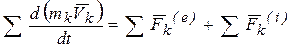 Запишем теорему об изменении количества движения для точки с номером k: