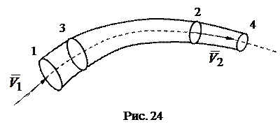 Выделим в потоке жидкости (рис. 24) объем, ограниченный линиями тока и двумя сечениями 1 и 2.