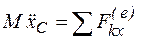 При поступательном движении все точки тела двигаются одинаково, поэтому для описания поступательного движения твердого тела достаточно описать движение хотя бы одной его точки. Если в качестве этой точки выбрать центр масс тела (т. С), то для этого можно использовать теорему о движении центра масс (38) или в проекции на оси координат: