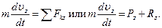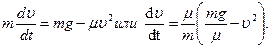 Далее находим Pz=P=mg, Rz=-R=-μυ2; подчеркиваем, что в уравнении все переменные силы надо обязательно выразить через величины, от которых они зависят. Учтя еще, что υz=υ, получим
