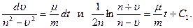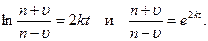 По начальным условиям при t = 0 υ=υ0=0, что дает С1=(1/2n)×ln 1 =0. Введя еще одно обозначение