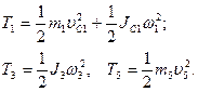 2. Определяем Т0 и Т. Так как в начальный момент система находилась в покое, то Т0=0. Величина Т равна сумме энергий всех тел системы: