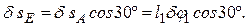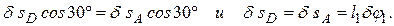 δsB = δsE соs 60° = l1 δφ1соs 30° • соs60° = 0,43l1 δφ1. (5)