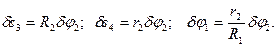 При расчетах учтем, что зависимость между возможными перемещениями здесь такая же, как между соответствующими скоростями звеньев механизма при его движении и воспользуемся известными из кинематики соотношениями (ход расчетов такой же, как в примере КЗ).