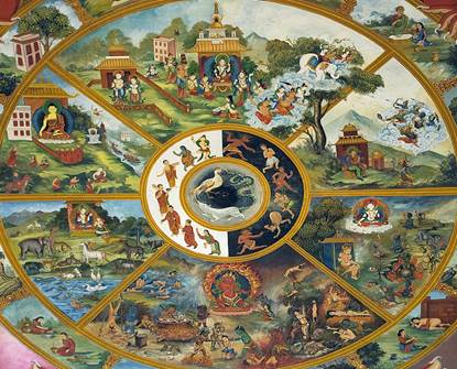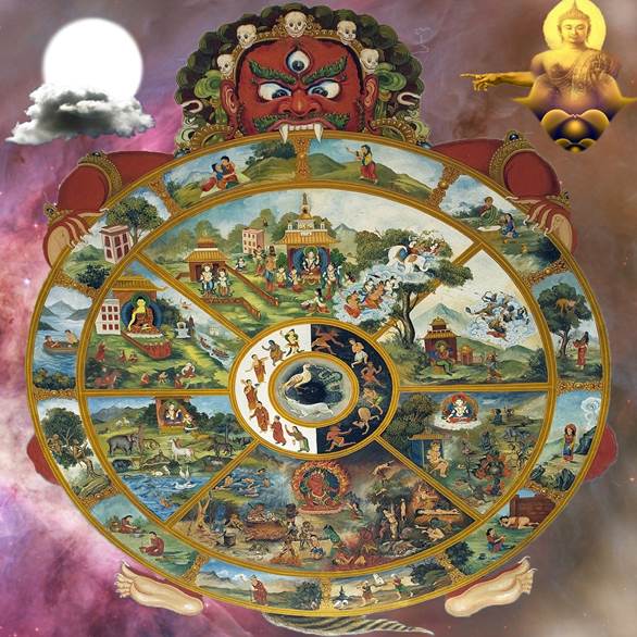 И именно Кармические желания, так доподлинно изображенные в колесе Сансары, приводят людей к постоянному перерождению в сферах, олицетворяющих наказание. Мы сами куем свой Ад или Рай.