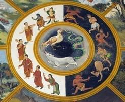 Следующий за этим круг разделен на шесть равных частей, каждая из которых показывает варианты возможных участей человека после его смерти.
