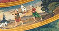 По внешнему кругу колеса расположены картины бытия, в количестве двенадцати штук, каждая из которых является символом отдельного момента из жизни человека.