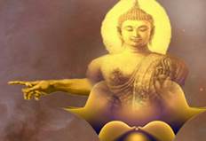 В верхнем же углу изображен Будду, указывающего на полную луну