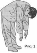 Встаньте прямо, мышцы расслабьте. Затем наклоните корпус вперед и опустите расслабленные руки вниз так, чтобы пальцы оказались немного ниже колен (рис. 1).