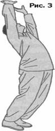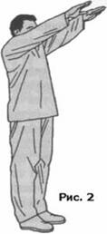 Медленно выпрямите корпус, поднимая руки (в локтях не сгибайте) по большой дуге перед собой (рис. 2).