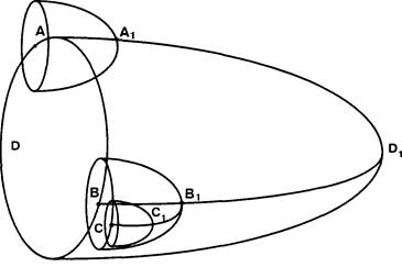 Рис. 3.3. Схемы аттракторы поведенческой реакции организма с учетом многоуровневого формирования этой реакции: молекулярный (CC1). органо-системный (АА1, ВВ1). организменный (DD1) уровни.