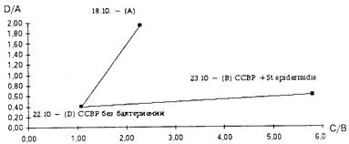 Анализ динамики критериев системы функционального компьютерного мониторинга при синдроме системной воспалительной реакции и сепсисе, произведенный нами. показал, что для сепсиса, как одной из форм ССВР. присущи все характерные признаки этого синдрома. Прежде всего — это значительное увеличение отношения С/В, соответствующее усилению роли анаэробных метаболических механизмов на фоне. как правило, снижения отношения D/A. что свидетельствует об угнетении насосной функции сердца и нарастании дисрегуляции между производительностью сердца и симпатическим тонусом периферической сосудистой системы, определяющей общее периферическое сопротивление. В ходе анализа достоверных различий по критериям системы функционального компьютерного мониторинга между наблюдениями с признаками синдрома системной воспалительной реакции (без бактериемии) и сепсисом обнаружено не было.