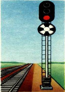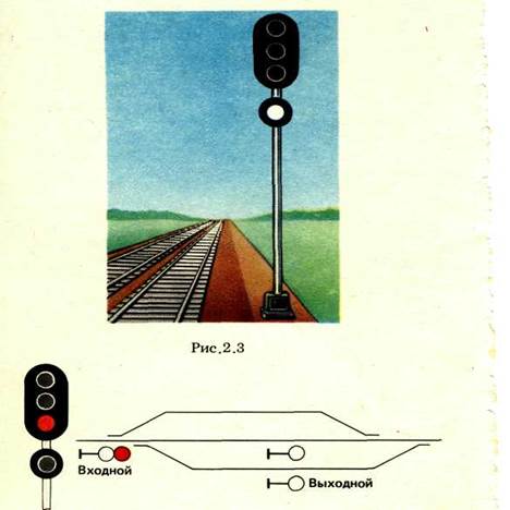 один желтый огонь — "Разрешается поезду следовать на станцию с готовностью остановиться; следующий светофор (маршрутный или выходной) закрыт" (рис. 2.2);