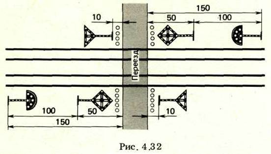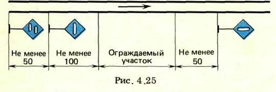 Схемы установки знаков на участках, где работают снегоочистители, приведены на рис.4.31, а где работают скоростные снегоочистители, — на рис. 4.32.