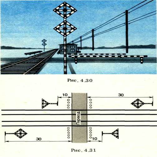 При двух близко расположенных препятствиях, когда между ними работа снегоочистителя невозможна, на шесте помещаются два знака один над другим (рис.4.30).
