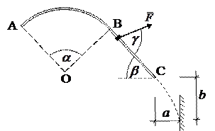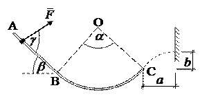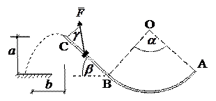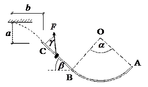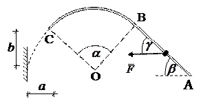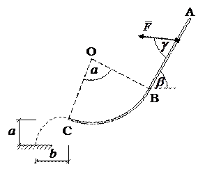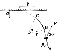 Решение. Для того, чтобы определить b, надо знать скорость шайбы в точке С. Для этого необходимо сначала рассмотреть движение шайбы по прямолинейному участку пути АВ, а затем по криволинейному ВС.