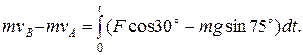 Изобразим действующие на шайбу силы. В проекции на ось АВ запишем уравнение теоремы об изменении количества движения (G = mg)