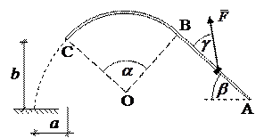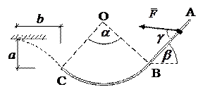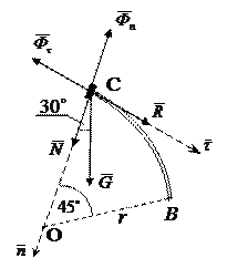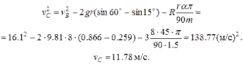 Сила трения направлена по касательной к траектории, длина пути (дуга ВС) равна , где – угол в градусах. Теорема об изменении кинетической энергии точки на участке ВС примет вид