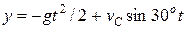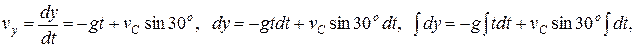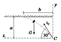 Составим уравнение движения тела, брошенного под углом к горизонту с начальной скоростью . Начало координат поместим в точке С. Время t будем отсчитывать от нуля. На шайбу действует только одна сила – вертикальная сила тяжести