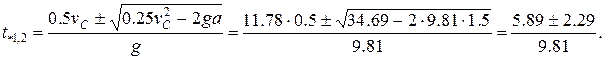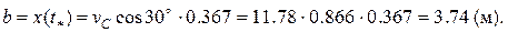 Из двух решений берем меньшее – момент первого пересечения траектории с поверхностью преграды. При