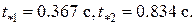 Из двух решений берем меньшее – момент первого пересечения траектории с поверхностью преграды. При = 0.367 имеем