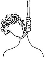 Еще два состояния подвешенности заслуживают упоминания. Один ассоциируется со структурой шизоидного характера и называется петля, потому что поза тела представляет собой фигуру человека, которого повесили. Голова слегка наклонена в сторону, как будто ее соединение с остальной частью тела нарушено. В шизоидной структуре существует разрыв связи между функциями головы, или эго, и функциями тела. Подвешенность за шею отрывает человека от земли. Шизоидная личность не заземлена, и контакт человека с реальностью слабый. Наиболее важным, однако, является тот факт, что ключевая область напряжения в этой структуре расположена у основания черепа, и именно это напряжение разделяет единство личности. На самом деле мышечное напряжение в этой области образует кольцо в месте соединения головы и шеи, которое действует как петля. В биоэнергетике с этими напряжениями проводится большая работа, чтобы восстановить единство личности (рис. 30).