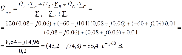 =120-(43,2 – j 74,8) =(76,8 + j 74,8) = 107,2× ej 44°15¢ B;