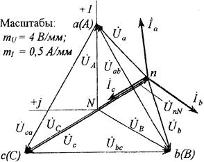 - рассчитать параметры цепи при обрыве фазы С и при коротком замыкании фазы а;
