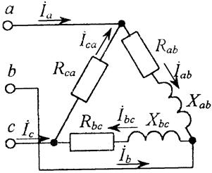В трехфазную сеть с линейным напряжением 220 В включен приемник (рис. 8.1), фазы которого имеют сопротивления: Z AB = (4 + j 3) Ом;