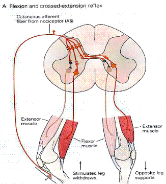 Рефлексы спинного мозга. Сгибательный рефлекс (отдергивания) и разгибательный рефлекс на противоположной стороне–полисинаптические рефлексы