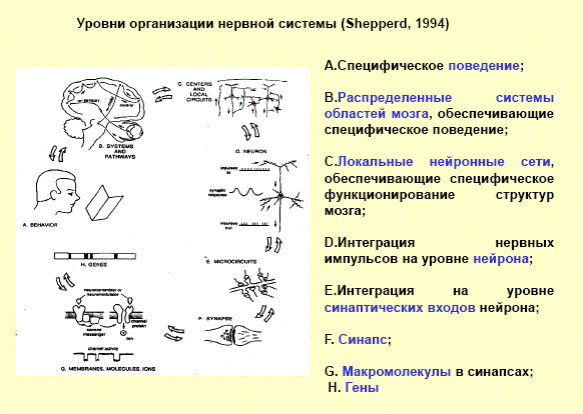 - Уровни организации ЦНС и их роль в обеспечении основных функций ЦНС (с учетом материала всего курса)