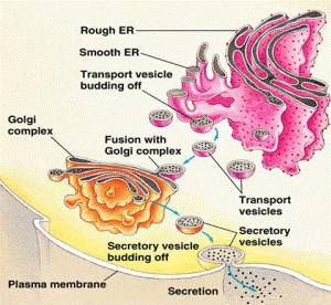 ЭР - внутриклеточная мембрана: шероховатый ЭР - место прикрепления рибосом и синтеза белков, гладкий ЭР (к нему относится и аппарат Гольджи) участвует в хранениии, концентрировании и упаковке белков для секреции