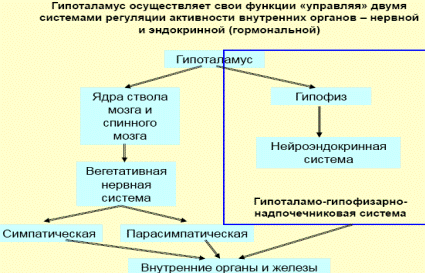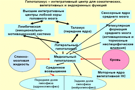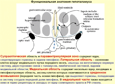 3. Гипоталамус – высший регуляторный центр вегетативной и эндокринной систем. Особенности функциональной анатомии гипоталамуса. (см.также билет 19 вопрос 3)