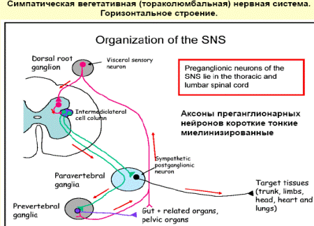 Симпатическая часть обеспечивает быстрое реагирование (“fight or flight”) всех систем организма на резкое изменение среды или психологический стресс.