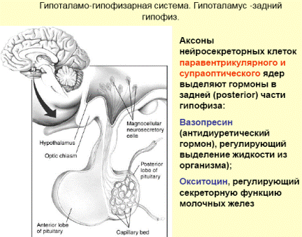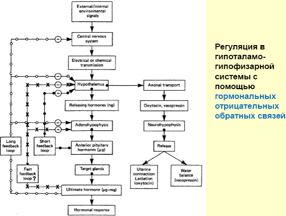 Гипоталамо-гипофизарная система: нейроэндокринные связи гипоталамуса с задним и передним гипофизом. Основные гормоны, выделяемые гипофизом, и их влияние на эндокринную систему и внутренние органы. Обратная связь в нейроэндокринной регуляции.