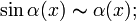 справедливы следующие соотношения эквивалентности (как следствия из так называемых замечательных пределов):