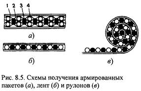 Технологическому процессу получения КМ предшествуют вспомогательные операции: очистка, мойка и сушка волокон, объединение их в жгуты или каркасы, получение элементарных соединений матрица - волокно, сборка чередующихся слоев элементов и др.