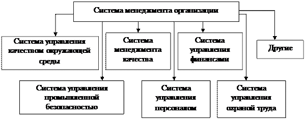 Система менеджмента (management system) – это система для разработки политики и целей и достижения этих целей. Система менеджмента организации может включать различные системы менеджмента, такие как система менеджмента качества, система менеджмента финансовой деятельности или система менеджмента охраны окружающей среды и другие (рисунок 1).