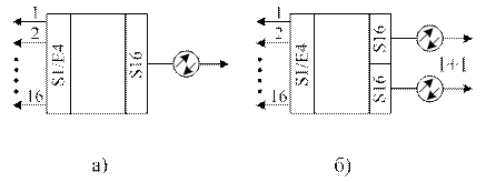 На рисунке 9: а) SLT-16 в режиме терминального мультиплексора; б) ТМ с защитой линии «1+1». Использование в режиме ADM возможно при установке двух ТМ «спина к спине» на станции.