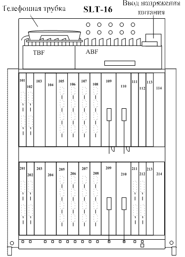 Платы, входящие в состав SLT-16, располагаются в слотах подстатива в соответствии с таблицей 1, возможные комбинации зависят от применения.