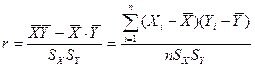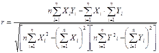 При малом числе наблюдений выборочный коэффициент корреляции удобно вычислять по следующей формуле: