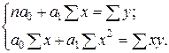 Система нормальных уравнений МНК для линейной парной регрессии имеет следующий вид: