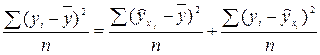 – общая дисперсия эмпирических значений y, характеризует вариацию результативного признака за счет всех факторов, включая х;